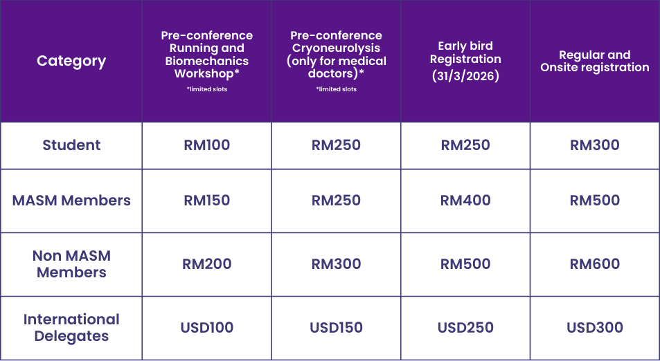 Whether you are a clinician, researcher, sports scientist, physiotherapist, coach or student, MASM 2026 offers knowledge that you can apply immediately in your practice and research. We encourage you to engage actively-ask questions, share your cases, present your work, network, explore collaborations and strengthen Malaysia’s sports medicine ecosystem.